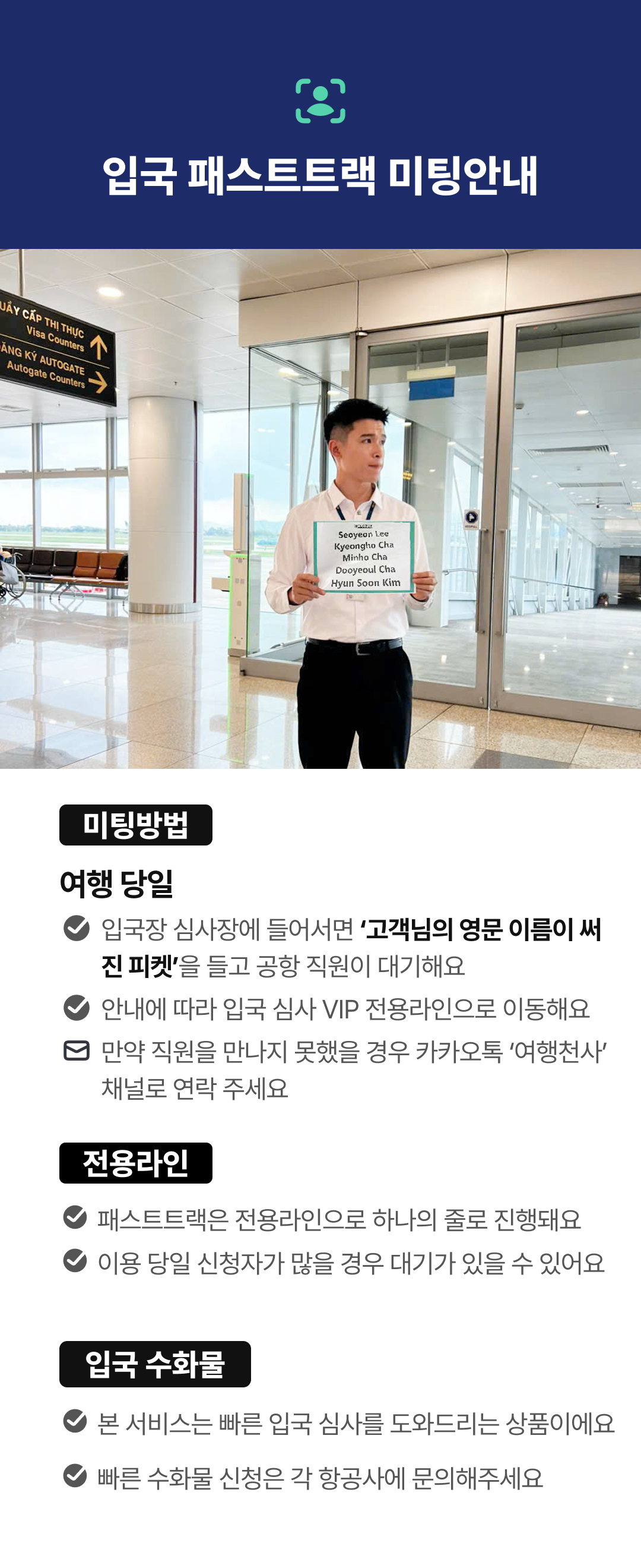 ✔ 현지 공항 직원 미팅 후 안내