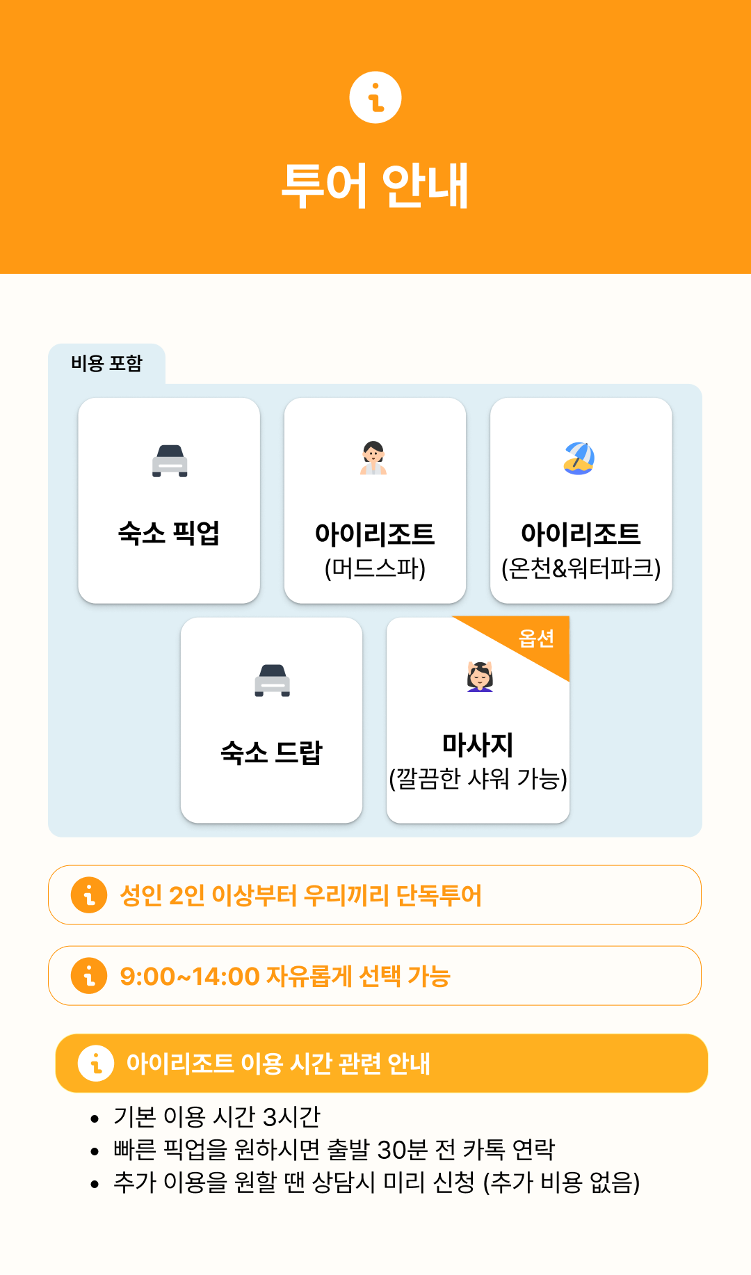✔ 숙소 ↔ 아이리조트 편안한 차량 이동