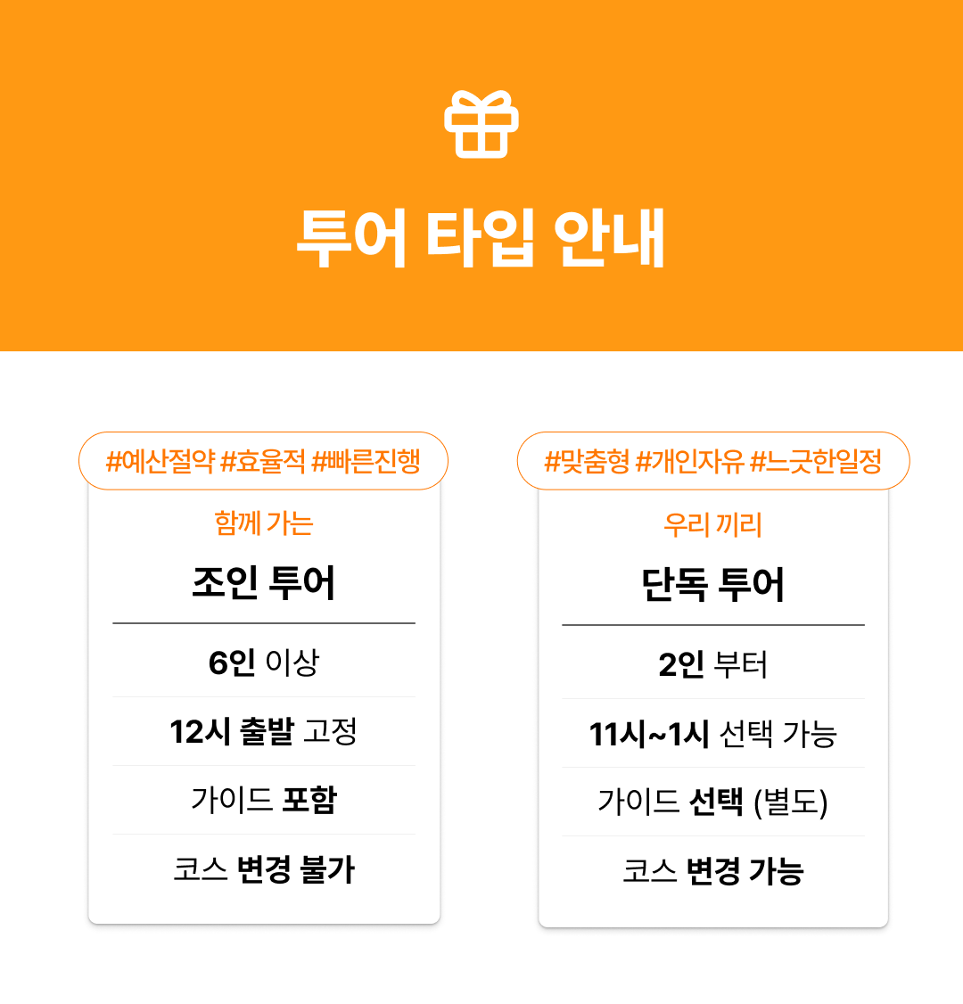 ✔ 조인 / 단독 투어 선택 가능