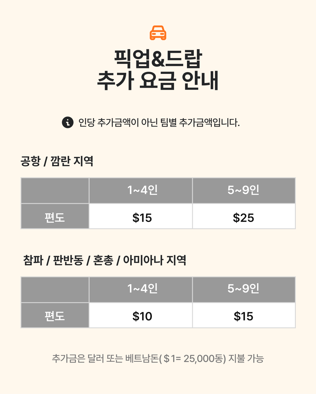 ✔ 숙소 픽업부터 공항 드랍까지 한 번에 이동