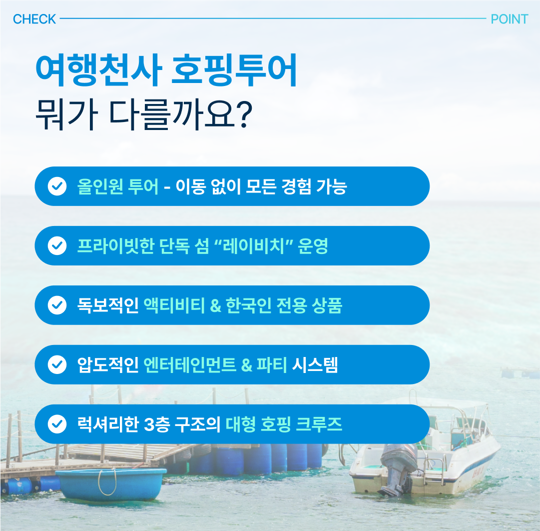✔ 한국인 전용으로 운영되는 프리미엄 호핑투어