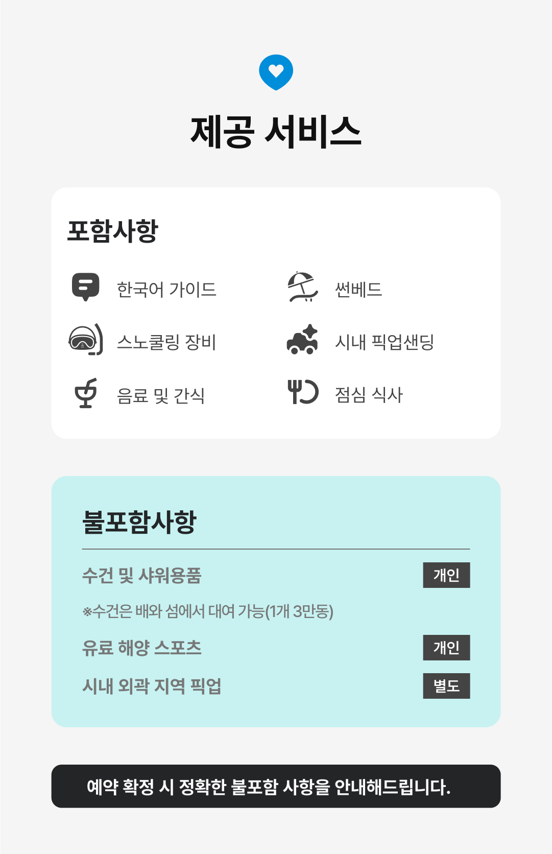 ✔ 해양 액티비티는 날씨 및 현지 상황에 따라 변경 가능